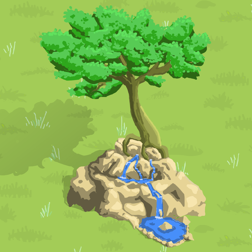 One thing I am really looking forward to in Arborlands is creating places. Places are magical. When a place has a personality of it’s own, it feels like it vibrates with a unique energy. I really love the idea of oases and secluded locations, there’s something peaceful and untouched about them. In that vein, I created this first sprite as a distinctive location. I had never animated flowing water before this week, so I was happy with the result of this first experiment.