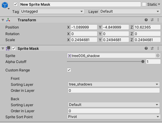 The mask and the shadow are in the same layer, above all other layers, and the custom range is set to have the default layer behind it.