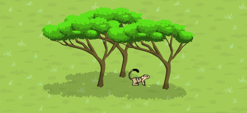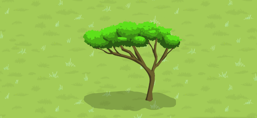 I did encounter a frustrating problem though, overlapping tree shadows: In order to achieve a shadow look, I created an image (or sprite) that is completely black, then imported it into Unity. I then set the black shadow to be partially transparent so that objects underneath it become shaded.