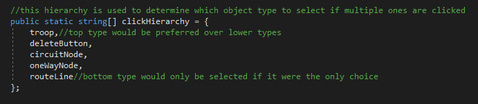 So if you hover over a troop and a route-line at the same time and then click, the troop will be selected and no hover effect will appear for the line. And for good measure, all hover effects are disabled when an object is being dragged.