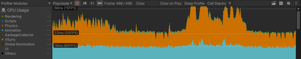 Note how much less computation is spent on physics! It seems that, for now, animation will continue to be the bulk of the CPU’s work, but it is still much less demanding than before 🌟.